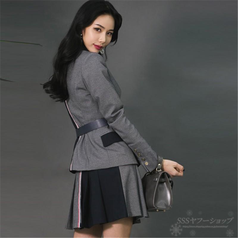 スーツセット 2点セット レディース スーツコート ミニ丈スカートライトアウター ラペルカラー プリーツスカート ベルト付き ドッキング バイカラー 春 Chutn Sssヤフーショップ 通販 Yahoo ショッピング