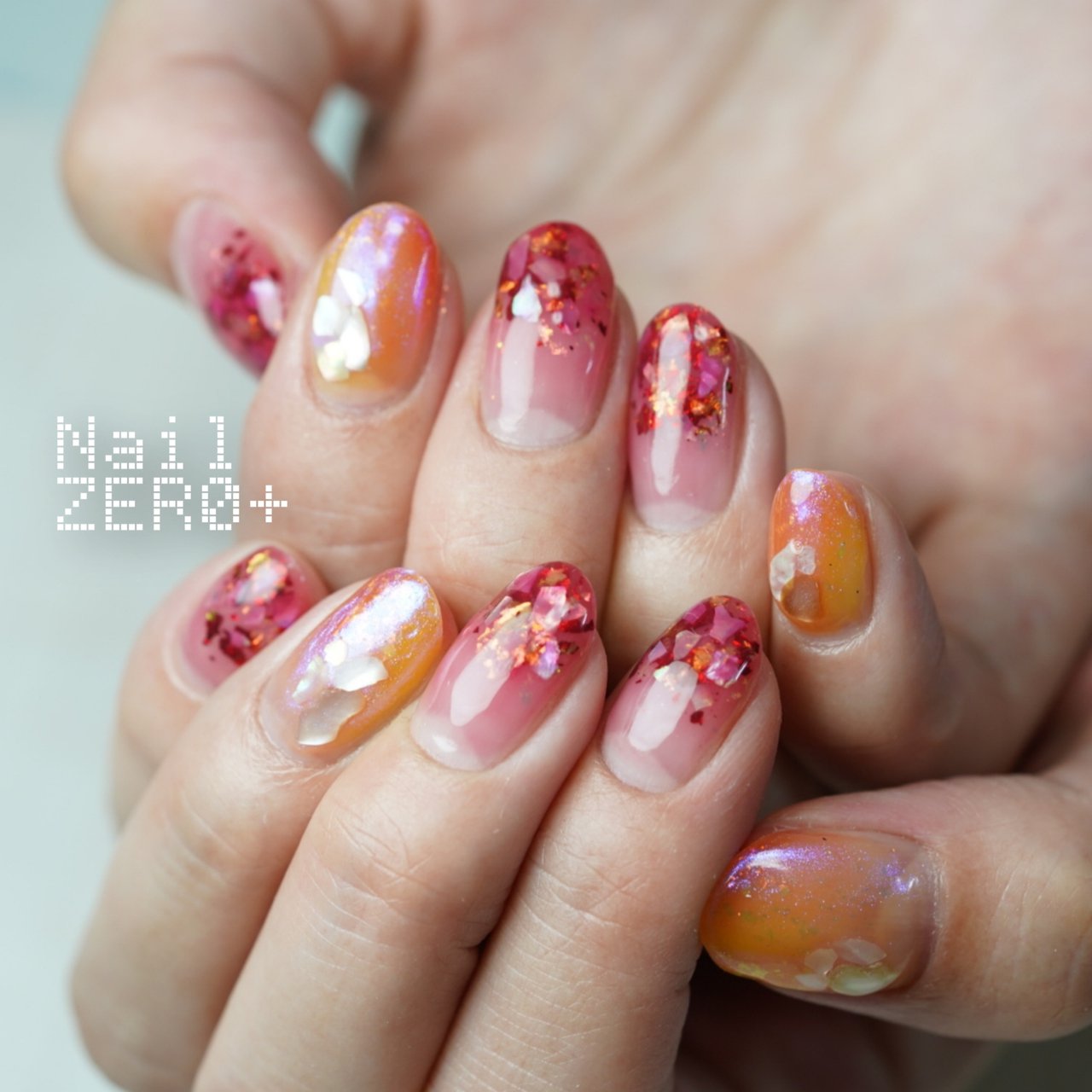 ジェルネイル 夏 ネイル オレンジ グラデーションのギャラリー